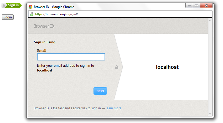 -- Note: In order to log in with BrowserID, you must correctly